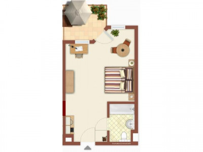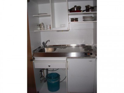 Die nach Westen ausgerichtete kleine Wohnung im 2. Obergeschoss der Wohnanlage kann vom Hauseingang oder von der Tiefgarage stufenlos mit dem Aufzug erreicht werden.Der Wohnbereich ist großzügig geschnitten und komplett möbliert (Schrank-Küche, Küchenschrank, Kleiderschrank, Schreibtisch und Bett). Das Bad ist in Natursteinoptik gefliest und mit Badewanne, WC und Waschbecken sowie einer Waschmaschine eingerichtet. Die Pantry-Küche ist im Eingangsbereich eingebaut und verschwindet nach dem Gebrauch hinter der Schranktür.Von dem geräumigen Wohn- Schlafzimmer mit anschließendem West-Balkon genießt man den Blick ins Grüne.Zur Wohnung gehört ferner ein TG-Stellplatz (Doppelparker). Eine effiziente Wärmedämmung sorgt für Wohnbehaglichkeit und niedrige Heizkosten. Fernsehempfang über Sat.-Anlage. Hausreinigung und Winterdienst sind in den Nebenkosten enthalten.Energiebedarfsausweis: 98,3 kWh/(m²a) Gas, Baujahr 1996,BJ Anlagentechnik 2009, Energieeffizienzklasse C.