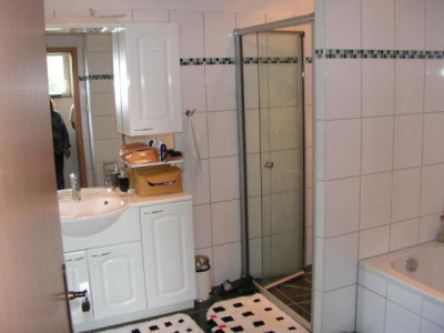 Telefonische Anfragen werden SOFORT bearbeitet. Mailanfragen-Bearbeitung dauert länger.schönes gepflegtes Einfamilienhaus in ruhiger Ortsrandlage.Einkaufsmöglichkeiten,Kindergärten,Schulen sind in der Nähe.Das Haus bietet im Erdgeschoss 1 große Wohnküche mit EBK, 1 großes Wohn-und Esszimmer,1 Schlafzimmer,1 Gästezimmer,großes Komplettbad mit begehbarer Dusche Badewanne und WC,1 Gäste WC,2 große Dielen mit einer Massiv-Holztreppsins Obergeschoss.Im Obergeschoss 2 große Schlafzimmer,Badezimmerausbau möglich.Die gesamte Wohnfläche verteilt sich auf 160m² 2 Carports mit 2-3 Stellplätze sind vorhanden.AUSSTATTUNG: neuwertige Kunsstofffenster mit Doppelverglasung und Aussenrollläden.Die Gas-Zentralheizungsanlage mit teilweiseFußbodenerwärmung wurde 2006 erneuert.WW-Aufbereitung erfolgt über die Heizungsanlage.Alle Fussböden sind in 2006 modern mit Fliesen und Laminat belegt worden.Ein zusätzlicher Bauplatz könnte ausgewiesen werden.Alle erforderlichen Anschlüsse für Telefon und TV sind vorhanden.Das Haus wird vom Eigentümer bewohnt,und ist nachvorheriger Absprache sofort freiwerdent.Ein großer Bade - und Freizeitsee befindet sich in unmittelbarer Nähe.
