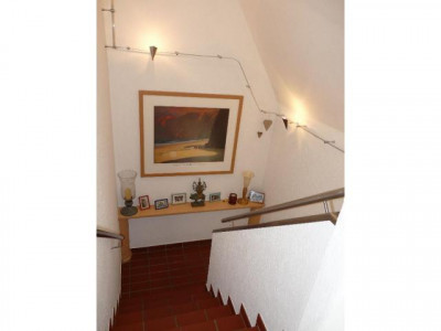 Im Jahre 1965 wurde diese Immobilie in zentrumsnaher aber dennoch ruhiger Lage von Wittmund erbaut. Die Innenstadt ist in kurzer Zeit fußläufig erreichbar. 1970 wurde das Haus um einen Anbau erweitert. Der pflegeleichte und kaum einsehbare Garten bietet schöne Stunden im Freien. Der idyllische Schlosspark grenzt an das Haus. Der Innenbereich ist gepflegt und im mediterranen Stil gehalten und das Beste ist: Die clevere Raumaufteilung bietet Ihnen hier variable Nutzungsmöglichkeiten. Durch kleine Umbaumaßnahmen wäre hier ein ebenerdiges Wohnen durchaus möglich. Durch einen hellen Windfang gelangen Sie in die Diele. Eine Schiebetür führt Sie in den Wohnbereich des Haus. Hier stehen Ihnen ein helles Wohnzimmer sowie eine angrenzende Essdiele mit Einbauküche zur Verfügung. Das besondere Highlight ist der Biofire-Kachelofen, der die Räume Wohnzimmer und Küche zusätzlich mit behaglicher Wärme an den kalten Tagen versorgt und erheblich dazu beträgt, die Energiekosten zu senken! Im Anbau befinden sich eine praktische Waschküche, ein Abstellraum und ein Badezimmer, welches sich allerdings noch im Rohbau befindet. Die zum Objekt gehörige Garage beinhaltet einen seperaten Werkstattraum, den Sie individuell als Hobbyraum oder ähnliches nutzen können. Der Keller ist in 2 Räume aufgeteilt. Hier bietet sich eine ideale, gekühlte Abstellfläche. Im Obergeschoss schließen 2 Schlafzimmer (eins mit Zugang zum Balkon) sowie ein Gästezimmer/Büro und das Badezimmer diese Immobilie ab. Im Außenbereich stehen Ihnen insgesamt 2 Terrassen zur Verfügung. Eine der Terrassen ist überdacht und bietet Ihnen somit auch an Regentagen im Sommer ein Platz im Freien. Die zweite Terrasse erreichen Sie durch das Wohnzimmer sowie durch die Küche.