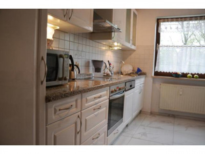 GRUNDSTÜCK UND GEBÄUDE:Dieses grosse Grundstück wurde 1988 mit einer architektonisch interessanten Wohnanlage mit 11 Einheiten und einer gut befahrbaren grossen Tiefgarage bebaut. Die Wegeführungen und Grünflächen machen einen gepflegten Eindruck. Im Gemeineigentum befinden sich mehrere Freisitze und großflächige Grünanlagen mit Busch- und Baumbestand.Die zum Verkauf stehende Eigentumswohnung befindet sich im 1. Obergeschoss und hat eine sehr gehobene Ausstattung. LEISTUNGSMERKMALE:(1) S-Bahn Nähe nach Frankfurt.(2) A66 schnell erreichbar.(3) Ruhige Wohnanlage (überwiegend Eigentümer-Bewohner).MODERNISIERUNGSMASSNAHMEN:(1) 2013: Bad 1 komplett inkl. Sanitärausstattung.(2) 2013: Bad 2 komplett inkl. luxuriöser Sanitärausstattung.(3) 2013: Bad 1, Bad 2, Küche: Bodenbeläge: weisser Marmor.(4) 2012: Einbauküche inkl. Kühlschrank.(5) 2012: Fassade.(6) 2003: Gaszentralheizung.ZIELGRUPPE:Diese Wohnung eignet sich für das Paar oder für die Familie mit Kindern die (1) beste Infrastrukturanbindung z.B. nach Frankfurt benötigen inkl. S-Bahn-Nähe und schnelle Autobahnanbindung UND(2) in einer gepflegten Wohnanlage wohnen möchten mit 2 Tiefgaragenstellplätzen UND(3) eine gepflegte Wohnung mit luxuriöser Ausstattung wünschen.