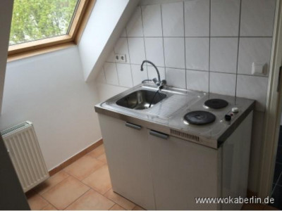 Dieses schöne Gründerzeithaus wurde erst vor Kurzem aufwändig modernisiert. Die Fassade wurde erneuert und die alten Treppenhäuser saniert, d.h. die Geländer wurden liebevoll aufgearbeitet und jeweils ein Sisalteppich neu verlegt. Im Hof steht ein kleiner Spielplatz mit Buddelkasten für die Kleinsten zur Verfügung.Die angebotene Wohnung befindet sich im Dachgeschoß des Seitenflügels und ist daher, trotz der zentralen Lage, absolut ruhig. Die Westausrichtung der Fenster sorgen für eine gemütliche Helligkeit.Man betritt die Wohnung über einen kleinen Flur mit Lichtkuppel, der in das große Zimmer mündet. Die linke Wand wurde im Rohzustand erhalten, gestrichen und auch die alten Dachbalken, direkt an der Wand, wurden erhalten und bieten ein dekoratives Highlight.Über dieses Zimmer erreicht man gradeaus einen Abstellraum sowie einen weiteren kleinen Raum mit Tür zum Treppenhaus, der sich hervorragend als Ankleidezimmer eignet.Über eine kleine Küche, ausgestattet mit einer Pantry-Küche kommt man dann in das praktische, komplett geflieste Duschbad mit Fenster.Nach Auszug des letzten Mieters wurde die Wohnung vom Eigentümer komplett renoviert.Hier erwartet Sie ein kleines Schmuckstück.