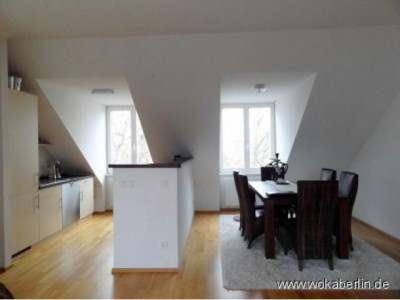An einer ruhigen Straße gelegen finden Sie die Ende 40er Jahren erbaute, gepflegte Wohnsiedlung umgeben von Gärten mit altem Baumbestand, viel Rasenfläche und Hecken. Jeder Bewohner kann sich hier im Grünen mit Freunden oder Familie niederlassen, und bei Spiel oder Picknick in der frischen Luft die Freizeit genießen.Über das helle Treppenhaus erreichen Sie die gut geschnittene 3-Zimmer-Dachgeschoss-Wohnung im dritten Stock. Als erstes betreten Sie den geräumigen Wohn-Essbereich mit offener Küche. Ein schöner Parkettboden verleiht eine warmes Wohngefühl. Durch die Deckenhöhe von 2,70 wirkt der Raum großzügig und hell. Hochwertige Holzfenster oder Velux-Dachfenster schaffen eine luftige Atmosphäre und gewähren verschiedene Ausblicke nach draußen in die grüne Umgebung und in den Himmel.Um auch über die grauen Wintertage die Gemütlichkeit zu erhöhen, kann hier sogar mit wenig Aufwand ein Kamin angeschlossen werden. Das Wohnzimmer, eines der Schlafzimmer sowie die Terrasse sind nach Süden hin ausgerichtet. Hier lässt es sich Sonne tanken und entspannen! Die offene Einbauküche ist gepflegt und mit modernen, elektrischen Geräten versehen. Das Tageslichtbad bietet ausgiebig Platz, ist zeitgemäß hell gefliest und mit einer Badewanne, Hänge-WC und Handtuchheizkörper ausgestattet.Letze Modernisierung bzw. Dachausbau wurde 2008 durchgeführt (u.a. Strangsanierung, Sanierung der Fassaden, Installation neuer Balkone und Terrassen).Die ruhige Wohnlage verspricht absolute Entspannung von der Hektik des Alltags. Alles in allem eine hübsche, freundliche Wohnung ideal für eine Einzelperson, Paar oder Kleinfamilie.