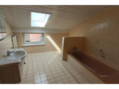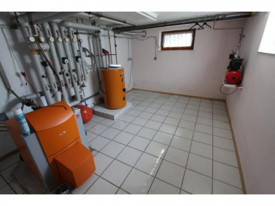 Das Wohnhaus wurde 1986 in Massivbauweise errichtet. Das Haus ist voll unterkellert. Der Bauzustand ist gut. Aufteilung:KG.: Flur, Kellerraum, Partyraum, Hobbyraum, Waffenraum, Heizungsraum mit Hauswasserwerk.EG.: Flur, Wohn- und Esszimmer mit Kachelofen und Zugang zur Terrasse (teilüberdacht), große Wohnküche, Badezimmer/Dusche/WC, Abstellraum.DG.: Flur, Kinderzimmer, Badezimmer/Wanne/WC, Kinderzimmer mit Balkon, Schlafzimmer, Büro.Die Wohnfläche beträgt ca. 180 m².Fußbodenheizung im Erdgeschoss. Marmorboden in Wohnzimmer und Flur. Rest vom Haus Fliesen sowie Laminatböden. Eine großzügige Doppelgarage (elektrischer Toröffner) mit angebautem Abstellraum befindet sich direkt am Haus. Öl-Zentralheizung. Öffentliche Wasserversorgung. Hauswasserwerk für Gartenwasser.