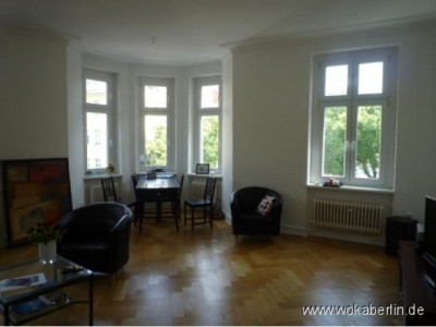 Das repräsentative Gründerzeithaus mit seiner schmucken Fassadengestaltung wurde um die Jahrhundertwende in massiver Bauweise und mit Holzbalkendecken errichtet. Im Rahmen einer umfassenden Sanierung und Modernisierung sind viele historische Details wie zum Beispiel zahlreiche Jugenstilelemente erhalten geblieben und wurden liebevoll aufgearbeitet. Dazu zählen: das schmiedeeiserne Tor mit Relief, das schöne gedrechselte Geländer im Treppenhaus, die Holzarbeiten an den Wohnungseingangstüren, die Doppelkastenfenster im gesamten Haus, der Imposante Stuck im Vorderhaus, die großen Flügeltüren und das hochwertige Parkett. Die im Vorderhaus und im Seitenflügel gelegene Wohnung wird über das tagesbelichtete Treppenhaus mit Fahrstuhl erreicht. Sie verfügt über zwei großzügige Balkone, einer im vorderen Wohnbereich zur Straßenseite, von wo Sie einen weiten Blick über die Bäume und Dächer der Stadt geniessen sowie einer im hinteren Bereich mit Blick in den idyllischen, begrünten Hinterhof. Der hintere Teil der Wohnung im Seitenflügel (ca.45m2) hat einen eigenen Eingang. Dadurch eignet er sich mit zusätzlicher Küche, Bad und Balkon hervorragend als kleine Gästewohnung für Besuch oder als Rückzugs- oder Bürobereich für Familienmitglieder welche dies schätzen. Es steht Ihnen auch frei, diesen Wohnungsteil als Apartment zu vermieten.Ganz ohne Frage: lassen Sie sich verzaubern von dieser großzügig gestalteten Wohnung, und genießen Sie das hochwertige, unaufdringliche Wohnerlebnis! Die charmante Altbauwohnung lädt zum Wohlfühlen ein und bietet einen geschmackvollen Rahmen für ein stilvolles Leben im typischen Stil der Charlottenburger Bohème.