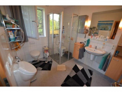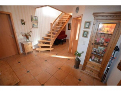 Dieses Einfamilienhaus steht auf einem 579m² großen Grundstück in einmaliger Hanglage, zentral und dennoch sehr ruhig.Die Immobilie bietet Ihnen auf 175m² die Möglichkeit des ebenerdigen Wohnens.Im Erdgeschoss haben Sie das Wohnzimmer mit direktem Zugang zur Terrasse, ein Esszimmer, die Küche, den HWR, und natürlich das Schlafzimmer mit Ankleideraum und einem Badezimmer mit Dusche, WC, Urinal und einem schönen Waschtisch.Für Ihre Gäste wird ein extra Gäste WC geboten.Über die schöne Holztreppe gelangen Sie in das DG.Im Dachgeschoss befinden sich zwei weitere Schlafzimmer und ein Badezimmer mit Eckbadenwanne, einer Dusche, einem WC und ebenso einem Waschtisch.Im OG befindet sich auch ein Raum für die Heizung.Auf der geschützten überdachten Terrasse können SIe bei jedem Wetter die fantastische Aussicht mit Ihrer Familie oder auch Freunden genießen.