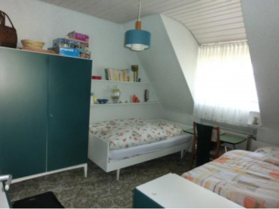Doppelhaushälfte in ruhiger, stadtnaher Lage mit idyllischem Garten - mit 6 Zimmern, Küche, 2 Bäder mit WC, Balkon, ca. 112 m² Wohnfläche, Kellerräume, Garage/Abstellraum im Haus sowie 356 m² Grund. Das einseitig an das Nachbarhaus angebaute Wohnhaus liegt in ruhiger sonniger Lage in einem zentrumsnahen, ruhigen Wohngebiet auf der Nordseite des Schloßbergs. Der Garten liegt auf der Süd- und Ostseite des Hauses. Auf der Nordseite wird das Grundstück als Zufahrt zur Garage/Abstellraum im Untergeschoss genutzt. Diese Zufahrt ist über ein Geh- und Fahrtrecht über das westliche Nachbargrundstück im Grundbuch gesichert.Das Haus wurde 1952 in massiver Bauweise erstellt. Das Satteldach ist mit Biberschwanzziegel gedeckt und ausgebaut. Aufgrund der Hanglage liegt das Untergeschoss auf der Nordseite frei.Im Erdgeschoss befindet sich der Hauseingang von der Südseite. Neben einem Flur mit Garderobe liegen das große Wohn-/Esszimmer zur Ostseite sowie eine Küche, das Bad und ein weiteres Zimmer. Im ausgebauten Dachgeschoss sind 4 Schlafzimmer und ein Duschbad vorhanden. Zur Ostseite liegt ein Balkon.Das Haus ist voll unterkellert; neben dem Heizungskeller ist der Waschkeller mit Zugang ins Freie. Ein Abstellraum ist ebenfalls vorhanden sowie ein Raum, der bisher als Garage genutzt wurde. Die Raumhöhe im Untergeschoss ist unterschiedlich, teilweise sehr niedrig.Die Beheizung des Hauses erfolgt über eine Gaszentralheizung (Vaillant Bj. 1995). Im Haus befinden sich mehrere Kamine. Der im Bereich des Wohnzimmers liegende Kamin ist nicht von der Heizung genutzt und könnte nach Absprache mit dem Kaminkehrer für einen Kaminofen genutzt werden. Der Zustand des Hauses ist gepflegt und dem Alter entsprechend. Die Brüstung am Balkon ist nur noch teilweise vorhanden und muss erneuert werden.Das Haus kann kurzfristig übernommen werden.Energieausweis ist beauftragt.