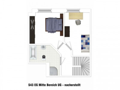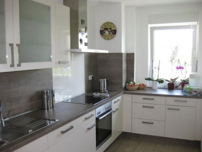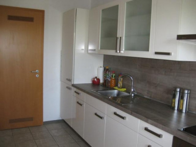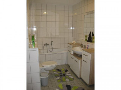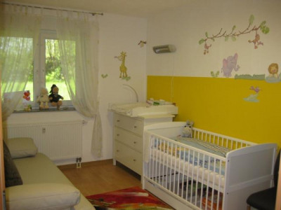 Diese schöne 3-Zimmer-Wohnung mit großem Balkon erstreckt sich über 2 Etagen. Im Erdgeschoss befindet sich das Wohnzimmer mit großem Balkon, die Küche mit Abstellraum sowie ein Gäste-WC. Schlafzimmer, Kinderzimmer sowie Badezimmer mit Dusche und Wanne liegen im Untergeschoss.