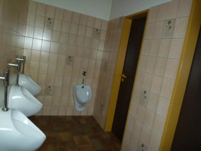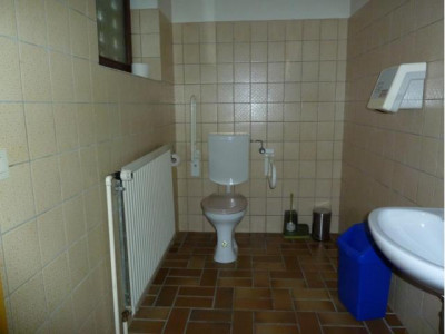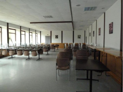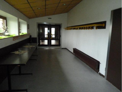 Im Dorfgemeinschaftshaus mit ca. 343 m² gewerbliche Nutzfläche sind folgende Räumlichkeiten vorhanden: Saal mit Theke und Nebenraum, Sitzungsraum, Küche, Kühlhaus, Lager, Herren- und Damen-WC sowie ein Behinderten-WC und ein großzügiger Eingangsbereich.
