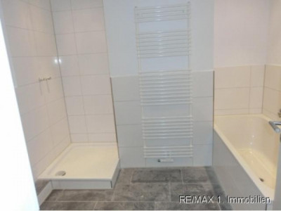 Erstbezug nach Sanierung Die charmante 3 Zimmer Wohnung bestehend aus 2 Schlafzimmern, wohnzimmer mit offener Küche und balkon, Gäste-WC und Badezimmer befindet sich im 1. Obergeschoss eines komplett sanierten Mehrfamilienhaus mit Personenaufzug.Der Aufzug fährt auch bis in den Keller.Beim Betreten der Wohnung stehen Sie direkt im Eingangsbereich wo sich links das Gäste-WC befindet und geradaus das Kinder-/arbeitszimmer. Rechts von der wohnungstüre herum befindet sich der große wohn-essbereich mit offener Küche und Zutritt zum Balkon, der nach hinten hinaus liegt. Gegnüber geht es durch einen Flur wo sich rechts davon das innenliegende Badezimmer mit Badewanne, Dusche, Handtuchtrockner und Waschmaschinenanschluss befindet.neben dem Badezimmer folgt das schlafzimmer das zur Straße liegt. Zu der Wohnung gehört ein Keller.