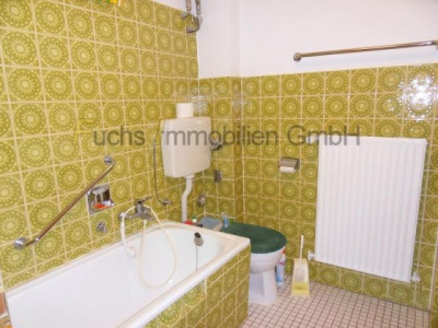 Im 2. Obergeschoss eines kleinen Wohn- und Geschäftshauses (2 Wohnungen, 1 Gewerbe) finden Sie diese sinnvoll aufgeteilte 3-Zimmer Wohnung mit Küche, Bad, Garderobe und Abstellraum. Der Ausstattung nach zu urteilen wurde diese Wohnung etwa Anfang/Mitte der 80er Jahre teilweise modernisiert (Türen, Fenster, Fußböden...). Sie wird beheizt über eine moderne Gas-Zentralheizung und verfügt über isolierverglaste Fenster. Der größte Raum in der Wohnung ist das etwa 33m² große Wohnzimmer (gefolgt von zwei etwa 17 und 12 m² großen Schlafräumen). Das Bad ist ausgestattet mit Badewanne, Handwaschbecken und Toilette. Die Bodenbeläge in den Wohn- und Schlafräumen sowie Flur wurden bereits entfernt. Die Immobilie ist auch als Kapitalanlage geeignet, ist frei und kann kurzfristig übernommen werden. Da es sich hier um ein Denkmalschutzobjekt handelt ist ein Energiepass nicht erforderlich.