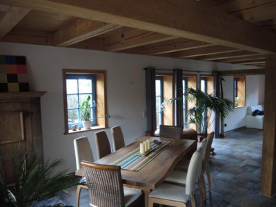 Genießen Sie schon Weihnachten das lodernde Kaminfeuer in Ihrem Fachwerkhaus.Wenn Sie ein mit " Liebe" aufwendig erbautes Fachwerkhaus suchen wo man sich einfach geborgen fühlt..haben Sie es gefunden!Dieses Haus wurde 2002 sehr aufwendig und mit hochwertigen Materialien nach traditioneller Fachwerkart gebaut.Das Krüppelwalmdach bietet nicht nur optische Besonderheiten, sondern ist die Stabilität bei diesen Dächern um ein Vielfaches höher, als üblich. Die Dachrinnen sind aus Kupfer und sprechen für Ihre extrem lange Haltbarkeit.Das Erdgeschoss ist sehr offen und großzügig gestaltet und ist mit Fliesen und Fußbodenheizung ausgestattet. Der Kachelofen spendet nicht nur angenehme Wärme sondern ist auch ein Blickfang. Von der offenen hochwertigen Einbauküche, gelangen Sie in den Hauswirtschaftsraum. Ein Blick in den Garten, lädt das wunderschöne Naturschwimmbecken mit Naturfilteranlage zum entspannen ein.Das Obergeschoss ist als Galerie ausgebaut und bietet dadurch ein offenes Büro. Im OG befinden sich drei Zimmer. Das Schlafzimmer wie auch der Flur haben Dielenfußböden. Das Badezimmer mit Badewanne ist mit Fliesen und Fußbodenheizung bestückt.Der Spitzboden ist ausgebaut und kann ggf. als Gästezimmer genutzt werden.Um Verzögerungen beim Exposéversand zu vermeiden, bitten wir bei Anfragen über das Internet um die Angabe Ihrer vollständigen Kontaktdaten (Name, Vorname, Email, Anschrift und Telefonnummer). Vielen Dank für Ihr Verständnis.HINWEIS:Zur Wahrung der Privatsphäre des Eigentümers bitten wir von Außenbesichtigungen Abstand zu nehmen. Bei Interesse vereinbaren wir gern einen Besichtigungstermin mit Ihnen!