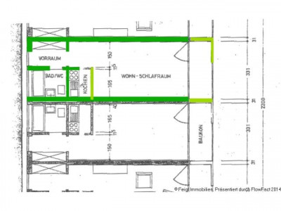 Dieses 1 Zimmer Appartement befindet sich in einem Mehrfamilienhaus und hat einen Grundriss von ca. 29 m² .Die Wohnung ist aufgeteilt in ein Tageslichtbad mit Wanne, Kochnische mit Einbauten, Wohn-/Schlafraum und Ostbalkon.