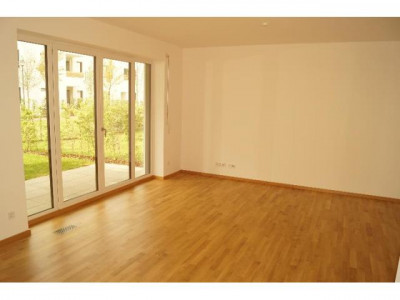 Eingangsbereich/Flur, Bad m. Wanne + Dusche + WM-Anschluß (in extra Raum), Kinderzimmer, Wohnzimmer mit offener Küche (Speis) und Zugang zur Gartenterrasse, Schlafzimmer
