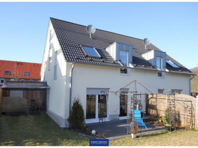 Aufteilung:Erdgeschoss, Wohnfläche ca. 62 m²Wohn-/Esszimmer mit Zugang zur Terrasse und zum Garten, Küche, Gäste-WC mit Dusche, Eingangsdiele, Abstellraum und Windfang.Dachgeschoss Wohnfläche ca. 55 m²Schlafzimmer mit Ankleide, 2 Kinderzimmer, Badezimmer, Abstellraum, Diele.Spitzboden, Wohnfläche ca. 19 m²Im Spitzboden befindet sich ein Studio mit einer Fläche von ca. 19 m², der sich auch als Schlafraum nutzen lässt.Zum Wohnhaus gehört eine Garage.