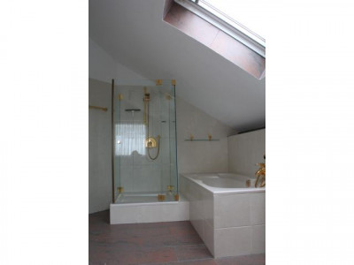 Level 1 - StraßeDrei Garagen mit el. Torantrieb fernbedienbar. Eine Garage mit manuellem Tor mit Fenstern und eingelassener Tür, Starkstromanschluss, Ofen mit Kamin, Fenster, bietet Möglichkeiten als Werkraum einem Hobby oder kleinem Gewerbe nachzugehen. Eine Garage mit getrenntem Heizölraum, Tankstutzen und -entlüftung zur Straßenseite. Fünf PKW-Stellplätze. Überdachte Treppe zum Haupthaus mit bewegungsgesteuerter Beleuchtung.Level 2 - UGÜber dem Werkraum liegt ein großzügiger Geräteraum mit Tür u. Fenstern. Der Hauseingangsbereich ist wettergeschützt. Das UG des Hauses verfügt über großzügige Diele mit Treppenaufgang (Tageslicht) zur Hauptwohnung, ebenerdigem Zugang zu Vorratsraum, Waschküche, Heizungsraum, Abstellkammer und dem Zugang zur Einliegerwohnung (ca. 60qm); diese verfügt über Wohnzimmer mit bodentiefen Fenstern und Zugang zu eigener Terrasse, Schlafzimmer, Küche mit EBK, Abstellkammer, Duschbad mit Tageslicht.Level 3 - EGGroßzügiger offener u. heller Wohn-/Essbereich, Zugang zu überdachter Terrasse/Garten, elektrische Rollläden. Wohnzimmer gefliest, heller Kachelofen. Esszimmer mit Parkett und tiefen Fenstern. Ein weiteres helles Zimmer mit Zugang zu dem hinteren Terassen- und Gartenbereich, Parkett, Erkervorbau mit seitlichen schmalen Einbauschränken. Küche, gefliest, hochwertige EBK mit Zugang zu überdachter Terrasse/Garten. Diele gefliest. Gäste-WC mit Tageslicht. Treppenhaus von EG zu DG durch hohe Fenster lichtdurchflutet.Level 4 - DGHelles Dachgeschoss mit hoher Giebeldecke, Diele, drei Zimmern sowie Badezimmer. Korkboden in allen Zimmern, maßgefertigte Wandschränke in den beiden größeren Zimmern. Das helle Badezimmer verfügt über hochwertige Ausstattung, vergoldete Amaturen und Fußbodenheizung. In Badezimmer und Diele ist hochwertiger Naturstein verlegt.
