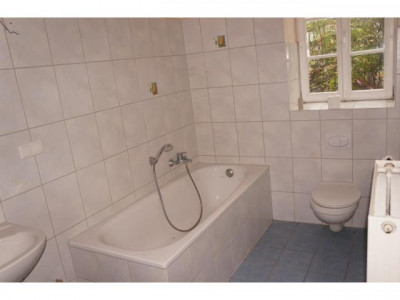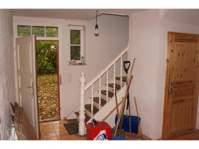 Es handelt sich hierbei um ein zweigeschossiges, teilunterkellertes Zweifamilienhaus in Fachwerkbauweise mit zwei Wohneinheiten.Die Wohnungen verfügen jeweils über drei Zimmer, eine Küche, ein Bad, einen Hauswirtschaftsraum und einen Flur auf 74 m² im Erdgeschoss und 78 m² im Obergeschoss.Das gesamte Objekt wurde im Jahre 1760 erbaut und 2002 umfassend modernisiert. Es ist mit einer Gaszentralheizung und Holzfenstern mit Isolierverglasung ausgestattet.