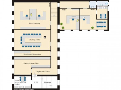 Diese Gewerbefläche ist ideal als Büro oder als Schulungsräume geeignet.Insgesamt 255 m² Fläche stehen Ihnen zur Verfügung.5 Räume + Kopierraum, Flur, Teeküche, WCGemeinschaftliche WC-Anlagen und eine gemeinsam nutzbare Teeküche sind vorhanden.Ab sofort frei!Neue Gaszentralheizung, Bj. 2014Energieverbrauchsausweis: 85 kWh/(m²a), ohne Warmwasser, Gaszentralheizung, Stromkennwert: 8 kWh/(m²a), Baujahr 1899, gültig bis 06.08.2024