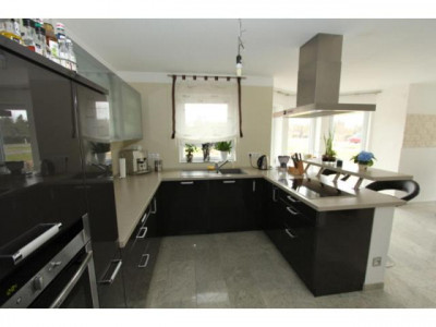 Telefonische Anfragen werden SOFORT bearbeitet. Mailanfragen-Bearbeitung dauert länger.Architektonisch hochwertiges, freistehendes Einfamilienhaus in Stadtrandlage; Baujahr 2011, es sind keine Renovierungen erforderlich, das Haus befindet sich in einem ausgezeichneten Zustand; 1,5 stöckige Massivbauweise mit Vollunterkellerung und Doppelgarage; Garten, Terrasse und Hof sind vorhanden; 5,5 Zimmer, Küche, Diele, Bad und G-WC.Wohnfläche ca. 142 m²Grundstücksfläche ca. 540 m²RAUMAUFTEILNG: EG: großes Wohn- / Esszimmer, Büro, Küche, Diele, G-WC, Hauswirtschafts- und VorratsraumOG: Schlafzimmer, 2 Kinderzimmer, großes Bad mit Wanne und DuscheDG: zum Ausbau vorbereitet UG: 2 Hobbyräume; HeizraumAUSSTATTUNG: Kunststofffenster mit Wärmeschutzverglasung und elektrischen Rollläden; Gas-Zentralheizung mit Brennwerttechnik und Solarunterstützung, Fußbodenheizung; WW- Aufbereitung über die Heizung; das Haus wird über ein BusSystem gesteuert; Granitböden, teilw. Laminat; Einbauküche (Preis auf Anfrage); ein offener Kamin und eine Sauna sind möglich; Das Haus verfügt über einen Vollwärmeschutz; Kabelanschluss vorhanden; das Objekt wird vom Eigentümer bewohnt, freiwerdend nach Absprache.