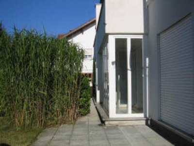 Diese schöne und architektonisch hochwertige Doppelhaushälfte mit Garten in einem bevorzugten Wohngebiet von Thannhausen ist genau die richtige "Wohlfühloase" zum Leben.Das Gebäude ist in der "Split-Level-Bauweise" errichtet und somit perfekt in das Hanggrundstück integriert worden. Durch die verschiedenen Ebenen und Raumhöhen im Haus wird eine abwechslungsreiche Wohnatmosphäre geschaffen.Beim Betreten der Erdgeschoßebenen befindet man sich in der hellen Diele mit Gäste-WC und Garderobe und von hier gelangt man direkt in das Wohn-/Esszimmer mit Zugang zur Südterrasse und in den terrassenförmig angelegten Garten. Die Küche befindet sich gleich im Anschluss.Die optisch ansprechende Firstverglasung im Treppenhaus lässt den Zugang in die Obergeschossebenen im Tageslicht erstrahlen. Hier befindet sich ein Bad und 1 Schlafzimmer mit Ankleide, sowie 2 Kinderzimmer mit Galerie, eines mit Zugang zum Sonnenbalkon mit weitem Ausblick durch das schöne Mindeltal. Das Haus ist komplett unterkellert. Der Keller ist gefliest und in je einen großzügigem Wasch- und Vorratsraum unterteilt. Im Anschluss daran befindet sich die große Doppelgarage.Im separaten Heizraum ist die zentrale Ölheizung untergebracht.Überzeugen Sie sich selbst bei einer Besichtigung von dem besonderen Flair der Doppelhaushälfte.Allgemeines:- Bauj. 1993- 125 m² Wohnfläche - 545 m² Grundstück - 4 Zimmer, Küche, Bad- Bodenbeläge in Parkett, Naturstein und Fliesen- Zentralheizung mit Öl- Große Doppelgarage- Anschluss für Kaminofen im Wohnbereich vorhandenLage:Das Haus befindet sich in ruhiger und guter Wohnanlage mit wunderbarem Ausblick ins Mindeltal. Die Umgebung ist mit Ein- und Zweifamilienhäusern bebaut. Thannhausen mit ca. 6.000 Einwohnern ist ein einladendes Städtchen im südlichen Landkreis Günzburg und bietet alles für den täglichen Bedarf. Am Ort befinden sich Grund- u. Hauptschule, Realschule und 2 Kindergärten, ebenso Ärzte, Apotheken, viele kleine Geschäfte und Supermärkte, sowie Freibad und Hallenbad.In netten Kaffees und guten Restaurants lässt sich das Leben genießen. Das Gymnasium Ursberg ist nur 4 km entfernt.Thannhausen liegt im Kreuzungspunkt der Bundesstraßen B 300 (Augsburg- Memmingen) und der Verbindungsstrasse Burgau - Mindelheim. Die nächst größere Stadt Augsburg ist ca. 30 Auto-Minuten entfernt. Den nächsten Autobahnanschluß zur A 8 München- Stuttgart (Burgau) erreicht man in 20 Minuten den Anschluß A 7 Ulm- Kempten (Anschlussstelle Illertissen) in 30 Minuten, den Anschluss zur A96 München-Lindau ( Anschlussstelle Mindelheim) ebenfalls in 30 Minuten.Thannhausen hat Busanschluß nach Augsburg und Krumbach/Memmingen, sowie nach Burgau. Der nächste Bahnanschluß (Dinkelscherben) nach Augsburg/München und Ulm/Stuttgart ist 12 km entfernt.