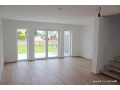 Auf einem nach Südwesten ausgerichteten Grundstück steht dieses massive, energetisch hochwertig und neu gebaute Eckhaus mit gehobener Ausstattung zur Vermietung. Es bietet über 6 Zimmer viel Platz für die gesamte Familie. Eine ruhige, zentrale Wohngegend und freundliche Nachbarn der kleinen Wohnanlage laden zum dauerhaften Wohnen mit Komfort ein. 2 Garagen mit dem darüber liegenden Speicher bieten viel Platz für Autos und Sonstiges. Highlights:- moderne Gas-Brennwerttechnik- Fussbodenheizung- freistehende Holztreppe- hochwertige Bodenbeläge - Südterrasse und Garten mit ca. 80 qm- Bad mit Wanne und begehbarer Dusche- 3-fach Verglasung- Rollläden, teilweise elektrisch- 2 Garagen mit großem Speicher um nur einige hier zu nennen. Am besten Sie überzeugen sich selbst. Die gezeigte Grundriss im Dachgeschoss zeigt leichte Abweichungen zur tatsächlichen Umsetzung ( im DG befinden sich 2 Zimmer statt dem Studio). Einzugstermin: ab sofortMiete: 1120€Nebenkosten: 80€ (ohne Gas für Heizung/Warmwasser)Garagenmiete: 2x40€Mietkaution: 3 MKMProvision: 2,38 fache der Grundmiete inkl. MwSt.Weitere Informationen zum Energiebedarfsausweis: Baujahr: 2014, Energieeffizienzklasse: B