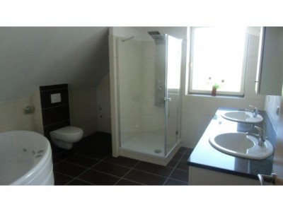 Dies Haus wurde 2015 fertiggebaut und hat ein super Ausstattung. Im Jahre 2015 ist eine neue moderne Brenwertheizung mit Solarunterstützung , eine neue Stromverteilung und eine neue eigene Hauskläranlage miteingebaut worden. Neben dem Haus steht eine ca 60 qm große , vollerschlossene Doppelgarage mit elektrischen Torantrieben.In der Garage befindet sich eine kleine Werkstatt.