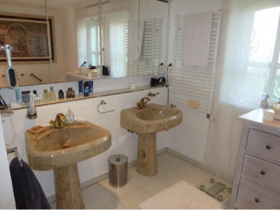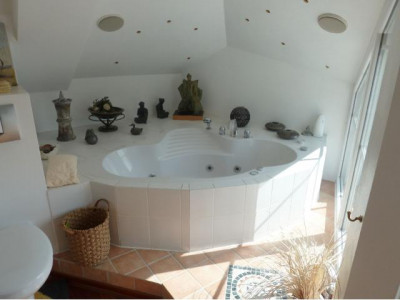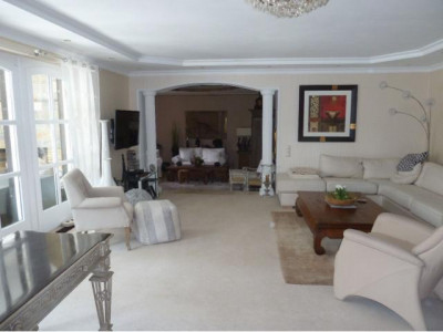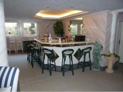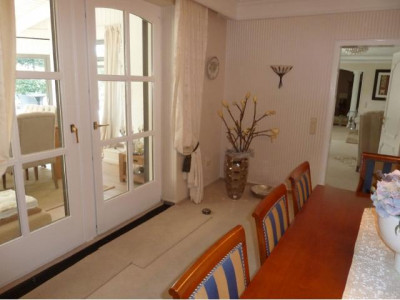 EIN WIRKLICH BEEINDRUCKENDES ANWESEN IM LANDHAUSSTILSchon der erste Gesamteindruck wird Sie begeistern: Von der Dacheindeckung in echtem Schiefer, der mit Naturstein gepflasterten Auffahrt vorbei an dem Carport zur Doppelgarage mit funkgesteuertem Türöffner bis hin zu dem liebevoll angelegten Garten mit gefliester Terrasse und Außensitzplatz, Gartenhaus und Fischteich, hat dieses Haus eine Menge zu bieten.Ursprungsbaujahr des Hauses1979, 2002 wesentlich erweitert.Innerhalb des Hauses finden Sie 7 bis 8 Zimmer auf üppigen 350 m² Wohnfläche und 250 m² Nutzfläche. Über eine großzügige Diele erreichen Sie die geräumige Küche, das Esszimmer mit Austritt in den verglasten Wintergarten, Arbeitszimmer und Zutritt zum Gäste-WC und in den Schlafbereich. Im Esszimmer befindet sich der Zugang in das großzügige Wohnzimmer mit Austritt auf die teilüberdachte Terrasse mit zusätzlichem Außenkamin und in das daran anschließende Kaminzimmer. Das Anwesen ist vollständig eingefriedet. Der Zutritt auf das Grundstück kann über einen elektrischen Türöffner erfolgen.Eine in Handwerksarbeit hergestellte Massivholztreppe führt in das OG, das durchgängig, mit Ausnahme des Bades, in hochwertigem Holzdielenbelag ausgeführt ist. Hier befinden sich neben einem Badezimmer mit Fenster, ein Zimmer mit Austritt auf einen Balkon, ein weiteres Zimmer mit einem zusätzlichen Balkon über nahezu die gesamte Hausbreite.Der großzügige Kellerbereich ist vollständig gefliest. Hier finden Sie den großen, innenliegenden und beheizbaren Swimmingpool mit Relaxzone und Thekenbereich von ca. 150 m² sowie eine gesonderte Toilette, eine ebenerdige Dusche und eine Markensauna. Daran schließt sich ein Kellerraum an.Neben dem ''Wellnessbereich'' befindet sich der Hausanschlussraum mit Gasheizung und einer Brennstoffzelle für Strom und Warmwasser mit Einspeisevergütung.Das Haus verfügt über einen Wasch- und Trockenraum sowie 2 weitere Kellerräume mit gesamt ca. 100 m².
