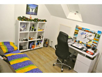 Es handelt sich um eine von 4 Wohnungen in einem schönen Mehrfamilienhaus mit grossem Charme in excellenter ruhiger Lage.Die Wohnung liegt in der 3. Etage. Die vier Eigentümer streichen noch den Flur. Das Haus ist 2013 außen gestrichen worden.2014 ist das 3.te OG und Dachgeschoss gedämmt worden.Zu dieser Wohnung gehören noch ein grosses Dachgeschoss mit Toilette und Dusche und Waschbecken. Das Dachgeschoss besteht aus einem Vorraum mit neuen Dachfenster 2014 und einem grossen L förmigen Raum und einem Badezimmer mit neuen Dachfenster aus 2014.Im Erdgeschoss befindet sich ein Abstellraum. Über einen hinteren Weg ist das sichtgeschutzgezäunte Grundstück hinter dem Mehrfamilienhaus auch erreichbar.Dadurch können hier Fahrräder gut und sicher abgestellt werden, da der Zugang hierzunur über eine abschließbare Holztür möglich ist.Die Wohnung hat 3 abschliessbare Zimmer. Eine grosse top ausgestattete Küche mit:Backofen, Mikrowelle, Ceranfeld, Wasch-Trockner (kann waschen und trocknen in einem Gerät),Dunstabzugshaube, grossen Kühlschrank mit ausreichend grossem Gefrierfach, Geschirrspüler, Kaffeemaschine, Wasserkocher etc.,Das Bad ist super geschmackvoll ausgestattet mit grosser Dusche mit Regen- und Handschauer-Duschmöglichkeit und Glasduschabtrennung. Top Design Waschtisch undUnterschrank sowie dem Badspiegelschrank.Wenn Sie den Eingangsbereich der Wohnung betreten, dann werden Sie begeistert sein:von der Schwarz/Weiß Design Garderobe, Schuhschrank, Flur-Doppel-Spiegel etc.Besichtigen Sie diese Wohnung - Sie werden begeistert sein nicht nur von der Bau- und Einrichtungs-Qualität und besonders der Nettomietenrendite, die über 7 % liegt.Die momentane Jahres-Kaltmiete liegt bei ca. 9684 Euro.Was wollen und suchen Sie mehr?