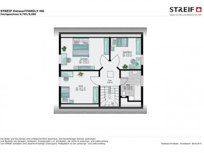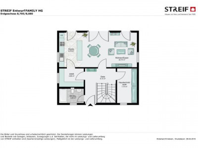 Ein freistehendes STREIF Einfamilienhaus, die im Preis enthaltene Ausstattung lässt kaum Wünsche übrig.Eine familiengerechte Architektur wird in diesem Haus groß geschrieben.Dies beginnt bereits im Erdgeschoss: Von der Diele aus erreichen Sie den großzügigen Wohn-/Essbereich. Das Gäste-WC, der Hauswirtschaftsraum und der Haustechnikraum runden das Erdgeschoss ab.Über eine formschöne, halbgewendelte Treppe erreichen Sie das Familienobergeschoss. Im OG befindet sich das Schlafzimmer, zwei Kinderzimmer sowie das schöne Bad.Die abgebildeten Grundrisse sind ein Vorschlag, wie Ihr neues Zuhause gestaltet sein könnte. Vielleicht haben Sie aber auch ganz andere Vorstellungen. Gerne gestalten wir mit Ihnen zusammen einen Grundriss, der sich Ihren Ansprüchen ans Wohnen perfekt anpasst und freuen uns schon jetzt auf Ihren Anruf!Wir legen Wert darauf, Sie mit persönlicher Beratung auf dem Weg zu Ihrem Wunschhaus zu begleiten.