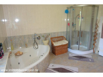 Diese massiv erbaute Doppelhaushälfte verfügt über ca. 160 m² Wohnfläche (5 Zimmer) und ca. 86 m² Nutzfläche(inkl. Garage).Der Gesamteindruck der Immobilie wird Ihnen gefalllen! Gepflegter Vorgarten und gepflasterter Eingangsbereich mit Natursteinen.Im Erdgeschoss erwartet Sie der Dielen-bereich mit Garderobe, das helle Gäste-WC, die Küche mit Durchreiche und das großzügige Wohn- Esszimmer mit Kaminofen. Direkter Zugang zum Garten mit Sonnenterrasse. Im überdachten Gartenhaus mit Grillkamin können Sie gemütliche Abende verbringen.Drei Schlafzimmer und das große Tageslichtbad mit Whirlpoolwanne, Glasrunddusche und Handtuchheizung finden Sie im Obergeschoss.Das Dachgeschoss wurde komplett ausgebaut und dient als zusätzliches Zimmer, ideal auch als Arbeits- und Hobbybereich.Voll unterkellert, Waschküche mit zusätzlicher Dusche, Kellerraum, Hobbyraum, Vorratsraum mit Treppe zur überlangen Garage. Hier kann z.B. Holz gut gelagert werden. nergiebedarfsausweis, Endenergiebedarf 104 kWh/(m²a), Flüssiggasheizung inkl. Warmwasseraufbereitung, Baujahr 2001, gültig bis 01.09.2024