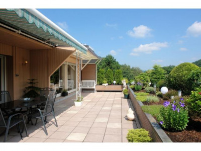 Insgesamt ca. 155 m² (inkl. 1/4 Terrassenanteile), 5 Zimmer.Schön angelegter Vorgartenbereich mit Zugang zum Haus. Hier wurde eine Doppeltür verbaut, ebenso sind die Fenster mit Schmuckgittern gesichert.Dielenbereich mit hochwertigem Marmorboden sowie der Marmortreppe, Gäste-WC, Arbeitszimmer und einem praktischen Einbauschrank. Schlafzimmer, hell modernisiertes Tagelicht-Wannenbad mit großer ebenerdiger Dusche.Die Besonderheit im Obergeschoss ist das großzügige Wohn-/ Esszimmer mit direktem Anschluss an den offenen Küchenbereich. Zugang zur herrlichen Dachterrasse (ca. 50 m²) mit Markise und Weitblick ins Grüne und die Iserlohner Wälder. Ein Abstellraum ist auf der Terrasse vorhanden.Im Untergeschoss stehen Ihnen zwei weitere Räumlichkeiten und ein Duschbad zur Verfügung. Beide Zimmer haben direkten Zugang zur kleinen Terrasse mit Gartenhaus.Wasch-/ Kellerraum mit Warmwasseraufbereiter (Vaillant) Inklusive einer Garage, eine Zweite kann zusätzlich erworben werden.- ErbpachtEnergiebedarfsausweis: Endenergiebedarf 120,8 kWh/(m²a), ohne Warmwasser, Elektro-Fußbodenspeicherheizung, Baujahr 1980, gültig bis 25.06.2024