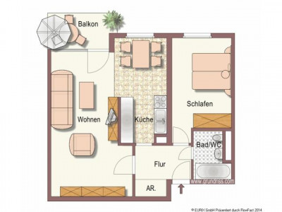 Bei dem angebotenen Objekt handelt es sich um eine helle 2- Zimmer- Wohnung mit Balkon. Die Eigentumswohnung befindet sich im 2. Obergeschoss einer im Jahre 1992 in Massivbauweise errichteten Mehrfamilienwohnanlage. Die Anlage ist als klassischer 2- Spänner mit zentralem Treppenhaus konzipiert. Ein Aufzug erschliesst jeweils die Vollgeschosse. Treppenhaus und Foyer sind mit Marmorfliesen ausgestattet und sehr gepflegt.Der großzügige Innenhof hat parkähnlichen Charakter und ist mit pflanzlichen Skulpturen und Blumenrabatten liebevoll gestaltet.