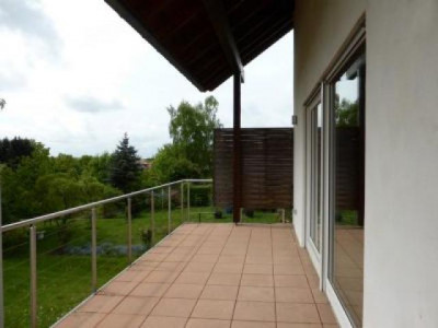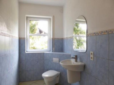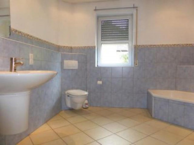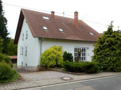 Dieses helle moderne Landhaus steht in schöner ländlicher Wohnlage zwischen Kaiserslautern und Waldfischbach, ca. 15 km von Kaiserslautern und ca. 8 km von Waldfischbach entfernt; bis Pirmasens sind es ca. 25 km. Das Haus steht auf einem ca. 2000 m² großen Grundstück in Südwestlage, rechter- und linkerhand mit genügend Abstand zu den Nachbarn, nach hinten an Wiesen und Wald angrenzend. Das Grundstück ist im vorderen Bereich als Rasenfläche mit Ziersträuchern angelegt; im hinteren Bereich als Wiesenfläche mit Pferdestall und 3 Boxen; Pferdekoppeln könnten bei Bedarf in der näheren Umgebung angepachtet werden. Das in 36,5-er Porotonsteinen im Jahr 2000 errichtete Haus ist zur Straßenseite 1 1/2 - geschossig mit Kniestock, Satteldach und roter Ziegeleindeckung; es ist voll unterkellert, wobei das Kellergeschoß zur Gartenseite hin über Erdniveau liegt und im Jahr 2006 zum Großteil zu Wohnzwecken ausgebaut worden ist; es hat auch einen rückwärtigen separaten Zugang und kann als Einliegerwohnung mit ca. 120 m² Wohnfläche genutzt werden. Die EG-Etage hat eine Wohnfläche von ca. 150 m²; die Wohnung in DG und ausgebautem Kehlspeicher hat ebenfalls eine Gesamtfläche von ca. 150 m². Insofern ist eine variable Nutzung des Anwesens möglich; es kann als großes Einfamilienhaus, als Wohnhaus mit Einliegerwohnung oder auch als 3-Familienhaus genutzt werden. Seitlich an das Haus angebaut ist eine große Doppelgarage mit Krüppelwalmdach und elektrischem Torantrieb; unter dieser befindet sich eine zweite Doppelgarage, die von der Rückseite her befahrbar ist; es stehen somit insgesamt 4 Garagenplätze sowie 3 bis 4 Autostellplätze vor dem Haus zur Verfügung. RaumaufteilungHanggeschoß: großzügiger Eingangs- und Flurbereich, 1 großer Wohnraum/family-room ca. 50 m² mit neuwertiger Einbauküche, weiterer Wohn- oder Schlafraum ca. 30 m², großes modernes Bad ca. 15 m² (freistehende Wanne, Eckdusche, Waschbecken, WC), Waschraum, große teilweise überdachte Terrasse Kellerdiele und Flur, Heizungsraum, 1 Abstellkeller Erdgeschoß: Windfang, Flur mit Garderobe, Gäste-WC, Wohnküche mit heller moderner Einbauküche und Eßplatz, Wohn-Eßzimmer ca. 40 m² mit Kaminofen, Hauswirtschaftsraum, Schlafzimmer, Kinderzimmer, Bad (Wanne, Dusche, Waschbecken, WC, weiße Sanitärobjekte, Wand- und Bodenfliesen sind weiß/blau gehalten), großer überdachter Südwestbalkon Dachgeschoß: Windfang, Flur mit Garderobe, Gäste-WC, Wohnküche mit heller moderner Einbauküche und Eßplatz, Wohn-Eßzimmer ca. 40 m², Hauswirtschaftsraum, Schlafzimmer, Kinderzimmer, Bad (Wanne, Dusche, Waschbecken, WC, weiße Sanitärobjekte, Wand- und Bodenfliesen sind weiß/blau gehalten) zusätzlich im Kehlspeicher: Empore/Studioraum mit Dachflächenfenstern und Blick ins darunterliegende Wohnzimmer
