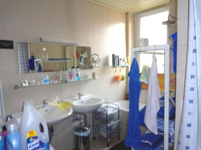Küche mit Balkon, helle Räume, Wohnzimmer mit Erker und großen Fenstern, separates Gäste-WC mit Fenster und Vorraum zum Badezimmer, Badezimmer mit Fenster und Badewanne, Abstellraum, Deckenhöhe 2,80 m