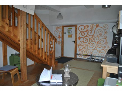 Im Alten Kesselhaus direkt über dem spanischen Restaurant SANCHO PANZA liegen die zu vermietenden Räume. 8 Jahre lang wurden sie genutzt als Raum für Fitness, Yoga, Autogenes Training, Kindertanzschule.... Der zentrale Raum ist säulenlos, ca 100 m² groß mit Schwingboden und großen Fenstern. Es gibt den Eingangsbereich mit Teeküche und WC (insg. ca 25 m²) ein Lager (12 m²). die Treppe führt zu 2 Räumen(je ca. 12 m²), zur Zeit als Umkleideräume genutzt, mit jeweils Toilette und 2 Duschen. Ein Nutzung als Kursraum, aber auch als Büro/Atelier ist gut denkbar.