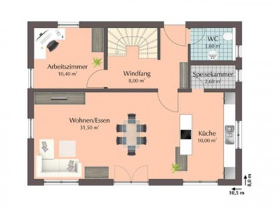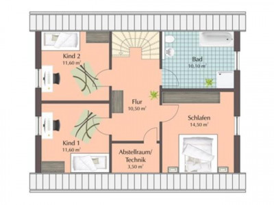 Wir projektieren hier ein Einfamilienhaus, das sich bestens für die vierköpfige Familie eignet. Die Räume im Erdgeschoss sind großzügig geschnitten. Neben dem Wohn- und Essbereich ist ein weiteres Zimmer vorgesehen, als Hauswirtschaftsraum, Büro oder Gästezimmer genutzt werden kann. Im Obergeschoss, das mit einem Kniestock von 160 cm geplant wurde, findet sich neben zwei gleich großen Kinderzimmern das Elternschlafzimmer und ein geräumiges Bad.