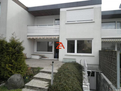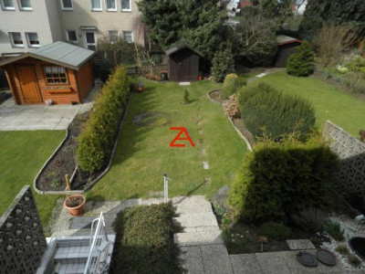 Letztere bietet einen direkten Durchgang in den angrenzenden Ess – und Wohnbereich, der mit Echtholz-Parkett in Eiche- Mosaik ausgelegt wurde. Von hier gelangen Sie auf die Terrasse mit Blick in den kleinen, gepflegten Garten des Hauses, den Sie sich selbst gestalten und einrichten können.