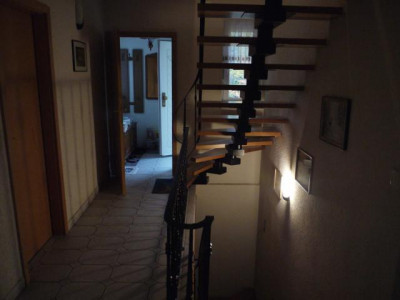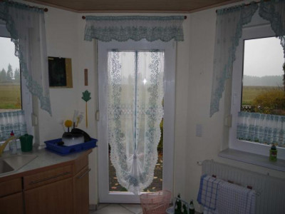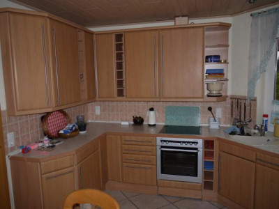 Das Haus wurde 1997 gebaut,- in massiver Bauweise, - Satteldach, mit 38° Neigung,- ist voll unterkellert, - mit Tiefgarage,- eine kombinierte Öl- und Holzheizung, zusammen mit Speicherkessel installiert,- größerer Vorrat an Brennholz ist im Schuppen gelagert,- Hauswasserversorgung erfolgt vom örtlichen Grundwasser.Das Haus hat eine günstige Ausrichtung des Daches in Ost-West-Richtung,- das Wohnzimmer hat eine schöne Süd- und- die Küche mit Ausgang zur Terrasse eine schöne Westausrichtung mit Blick auf Gartenteich und Landschaft, - das geräumige Wohnzimmer hat einen Kamin,- im Obergeschoß befindet sich das große Bad mit Dusche,- im Erdgeschoß ein kleineres Gäste-WC mit Dusche.Auf dem hinteren Teil des Grundstückes steht ein Schuppen (Holzbauweise),- mit Platz für zwei Pkw, Platz für Stellfläche (Überdachung).Renovierungsarbeiten sind erforderlich.