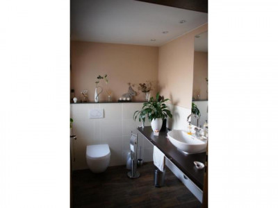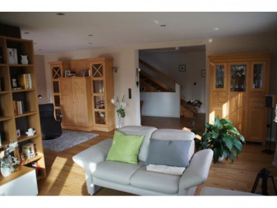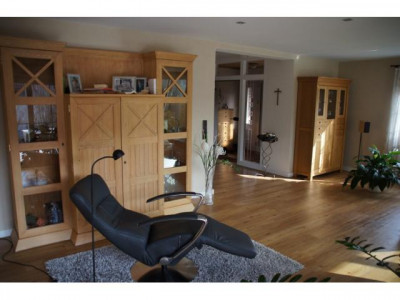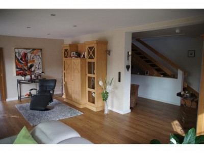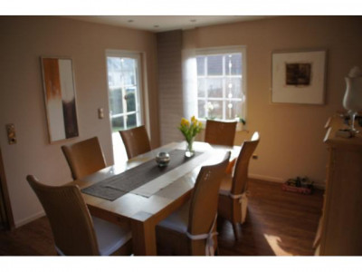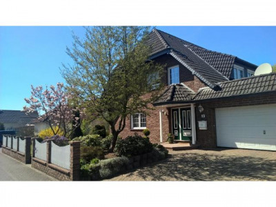 Einfamilienhaus mit Einliegerwohnung, vollverklinkert mit rot-braunen Handformklinkern und weißen Sprossenfenstern. Große, teils überdachte Terrasse. Getrennter Zugang von außen zur Einliegerwohnung.Doppelgarage. Kleiner Gartenteich mit Gartenhaus.