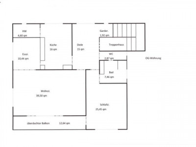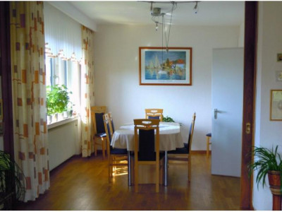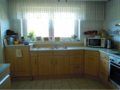 Großzügige, hochwertige OG-Wohnung in Zweifamilienhaus in Zetel – ruhig, doch zentral gelegen.Mit separatem Eingang/ Treppenhaus.Überdachter Balkon in Südlage von Wohn- und Schlafraum zu begehen.Neue Fenster und Balkontüren mit 3-fach Verglasung; Rollladen an Wohn-, Ess- und Schlafzimmerfenster.Parkettfußboden in Wohn-, Ess- und Schlafzimmer.Das Esszimmer mit Zugang zur Küche ist durch eine wandbreite Schiebetür mit dem Wohnraum verbunden.Zwischen Küche und Esszimmer befindet sich ein Einbauschrank (Poggenpohl).Die übrige Kücheneinrichtung könnte vom Vormieter übernommen werden.Das Badezimmer mit Wanne und großer ebenerdiger Dusche sowie das separate WC haben eine Fußbodenheizung.Zur Wohnung gehören ein Kellerraum und eine Garage.