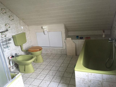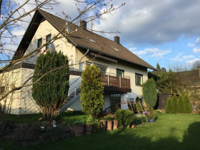 Es handelt sich hier um ein unterkellertes in 1980 errichtetes Einfamilienhaus mit Balkon und Garten auf einem 585 qm großen Grundstück.Die Wohnfläche von 150 qm ist verteilt auf zwei Geschosse. Das Kellergeschoss mit praktischer Waschküche, vier Kellerräumen, WC und Heizungsraum bietet Platz für einen Hobbyraum, Werkstatt oder ähnliches. Zudem bietet er genügend Stauraum und einen Zugang zum Garten hinter dem Haus.Im Erdgeschoss finden Sie einen offenen Wohnbereich mit Kaminofen und eine gemütliche Essecke neben der Küche vor. Vom Wohnbereich gelangen Sie auf einen großen Balkon, von dem aus Sie über eine Treppe in den schön angelegten Garten gelangen. Des Weiteren befinden sich auf dieser Ebene zwei weitere Zimmer, ein großzügiges Bad mit Tageslicht sowie ein Abstellraum. In der oberen Etage stehen Ihnen zwei weitere Zimmer, ein großer Raum und ein weiteres Bad zur Verfügung. Für weiteren Stauraum sorgen der große Dachboden sowie die vorhandenen Einzelgaragen.Geheizt wird in den Räumlichkeiten mittels einer Öl-Zentralheizung und zusätzlichem Festbrennstoffofen. Als weitere Wärmequelle bietet ein Kaminofen angenehme Wärme. Die beigefügten Fotos wurden während des Auszugs gemacht und sind dementsprechend.