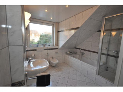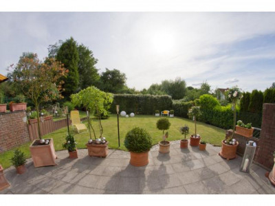 1991 durchdacht und mit Liebe zum Detail geplant, dem entsprechend gepflegtes Architekten-haus in Massivbauweise. Perfekte Lage mit ca. 150 m2 Wohnfläche in 2 Vollgeschossen (vorn1 1/2 mit Gaube) zzgl. voll ausgebautem Dachgeschoss mit separatem Bad sowie komplett gefliestem Vollkeller mit weiterem Wohnraum (Holzfußboden). Lichtdurchflutet durch 10 m breites und 30 m tiefes Grundstück in Süd-West-Ausrichtung mit pflegeleichtem, an eine naturbelassene Grünfläche grenzenden Garten und großer Terrasse mit Sonne von 11 h bis Sonnenuntergang.