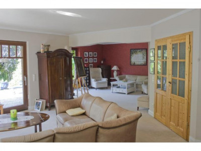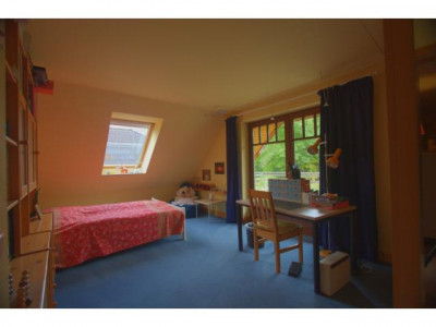 Diese außergewöhnliche Immobilie ist 1996 auf einem 1.050 qm großen mit wertvollen Pflanzen angelegten Grundstück in einer ruhigen Wohnstraße Großhansdorfs vor den Toren Hamburgs errichtet worden. Das vollunterkellerte Einfamilienhaus wurde mit einem Turm errichtet, welcher sich vom Keller bis zum Obergeschoß erstreckt.Das Gebäude wurde massiv mit Kalksandstein zweischalig mit Isolierung und rotem Verblendwerk gemauert. Die Garagenzufahrt sowie der Gehweg zum Haus sind mit Granitsteinen von der Grundstücksgrenze an gepflastert.Zwei Außenterrassen ermöglichen den herrlichen Blick in den uneinsehbaren Garten.