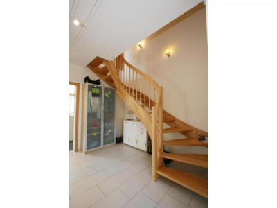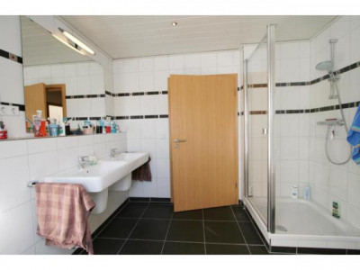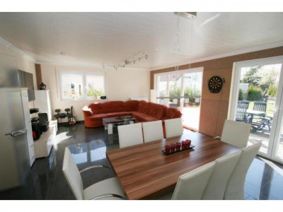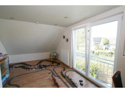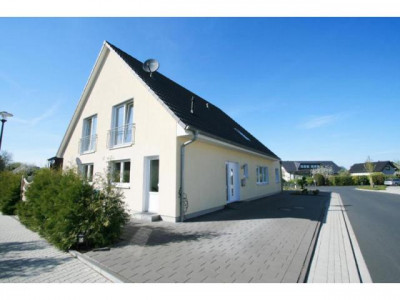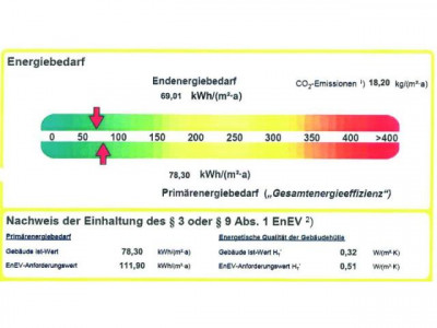 Dieses neuwertige Wohnhaus teilt sich auf in eine Hauptwohnung über zwei Etagen mit ca. 155 m² Wohnfläche und eine Einliegerwohnung mit ca. 69m² Wohnfläche. Besonders hervorheben möchten wir die pfiffige Aufteilung beider Wohnungen. Sie haben jeweils einen separaten Eingang und vermitteln das Wohngefühl von zwei Doppelhaushälften.Bei dem Bau im Jahre 2009 wurde viel Wert auf hochwertige Materialien gelegt. Dreifachverglaste Fenster sowie eine moderne Gasbrenntwerttherme versprechen einen geringen Energieverbrauch. Dieses zeigt auch der sehr gute Energiebedarfswert von nur 69,01 kWh/(m²*a). Im Erdgeschoss des Hauptwohnung befinden sich der helle Eingangsbereich mit Platz für eine Garderobe und das Gäste-WC sowie der Hausanschlussraum. Die geflieste Küche bietet Platz für einen Esstisch und ist von der Diele durch eine schöne Glastür getrennt. Im hellen Wohnzimmer haben Sie ausreichend Stellmöglichkeiten für Ihre Möbel. Eine große Couchgarnitur sowie ein Essbereich sind hier problemlos unterzubringen. Durch zwei große Flügeltüren gelangen Sie auf die Terrasse und in den herrlichen Garten. Eine gut begehbare Holztreppe führt Sie in das Dachgeschoss. Die Aufteilung in drei großzügige Kinderzimmer, ein großes Schlafzimmer mit Ankleide, ein helles Badezimmer mit Wanne und Dusche sowie zwei Abstellräume ist als gelungen zu bezeichnen. Nach entsprechenden Arbeiten und Rücksprache mit dem zuständigen Bauamt ist die Fläche auf dem Flachdach eventuell auch als Dachterrasse nutzbar. Die Hauptwohnung wird nach Absprache für Sie bezugsfrei.Die seniorengerechte Einliegerwohnung ist gut an zwei ältere Damen vermietet und befindet sich ausschließlich im Erdgeschoss. Über den Eingansbereich gelangen Sie in den Hauswirtschaftsraum, in das gut möblierbare Schlafzimmer, in das Bad mit ebenerdiger Dusche und in den großzügigen Wohnbereich mit angrenzender Küche. Diese bietet genügend Stellplatz für eine Essmöglichkeit.Weitere Informationen zum Energiebedarfsausweis: Baujahr: 2009