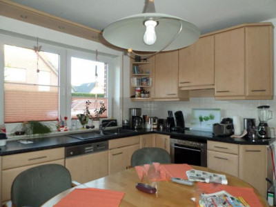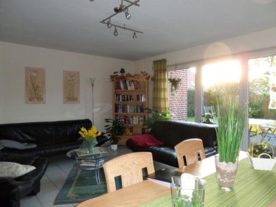Diese schöne, lichtdurchflutete Doppelhaushälfte befindet sich in einem ruhigen Wohngebiet, nicht weit vom Zentrum in Wettringen.Im Erdgeschoss, geht es vom grosszügigen Flurbereich in das geräumige lichtdurchflutete Wohnzimmer mit guten Stellmöglichkeiten für eine moderne Wohnlandschaft.Vom Wohnzimmer aus gelangen Sie auf die schöne Terrasse, von der aus sie den gepflegten Garten geniessen können.Ebenfalls im Erdgeschoss befindet sich die Küche, die bei Bedarf vom Vormieter erworben werden kann.Der grosszügige Hauswirtschaftsraum und das Gäste-WC finden Sie ebenso im Erdgeschoss.Im ersten Obergeschoss befinden sich 3 Schlafräume und das moderne Tageslichtbad mit Badewanne, Dusche und WC.Der Spitzboden ist bereits als Studio ausgebaut und bietet ein zusätzliches stylisches Zimmer.+++Haustiere dürfen auf Anfrage mit einziehen+++