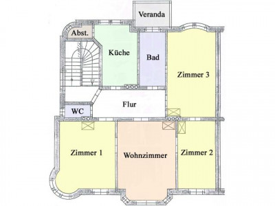 4-Raum-Whg mit Loggia, zusätzlich zur Heizung schöne Kachelöfen!