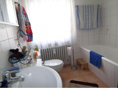 Sie betreten die helle Wohnung in einen geräumigen Flur, von dem aus die Küche und das Wohnzimmer abgehen. Die Küche hat eine neue Einbauküche, die vom Nachmieter übernommen werden kann. Das grosse Wohnzimmer hat einen Süd-West-Balkon, auf dem Ihre Gartenmöbel Platz haben. Vom Wohnzimmer gelangt man in einen kleinen Flur, von dem das Schlafzimmer und das Tageslichtbad mit Badewanne abgehen. Das Schlafzimmer hat auch Zugang zum Balkon. Es kann ein PKW-Aussenstellplatz für monatlich 15 EUR mit angemietet werden.