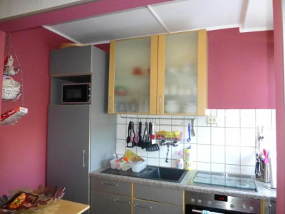 Das massiv errichtete 3-Familienhaus wurde ca. 1960 fertig gestellt. Das gesamte Haus mit seiner Umgebung wird kontinuierlich instand und sauber gehalten. Die Außenfassade wurde mit einem sonnig-gelben Außenputz verschönert.Das Grundstück zur Hausgemeinschaft umfasst insgesamt 484 m² und ist hinter dem Haus mit einer großzügigen Rasenfläche und seitlich mit Büschen und Blumen liebevoll angelegt.Ins Haus gelangen Sie über die Haustüranlage, die natürlich von der Wohnung aus mittels elektrischem Türöffner geöffnet werden kann. Das zentrale Treppenhaus empfängt Sie mit gelb gestrichenen Wänden und einem robusten Steinzeugboden.Über die Treppe geht es hinab ins Souterrain und schon stehen Sie vor der Wohnungseingangstür.