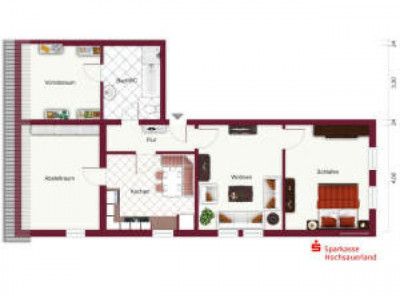 preiswerte 2-Zi.ETW inBrilon-ThülenWohnzimmer, Schlafzimmer, Küche, Diele, Bad mit Wanne und Dusche, zwei AbstellräumeExtras: Pkw-Stellplatz, Einbauküche