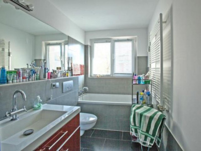 Diese Wohnung befindet sich in Berlin-Dahlem und wurde zwar im Jahr 1954 errichtet, jedoch im Jahr 2006 komplett saniert (Erneuerung der Elektrik, der Wasser- und Abwasserleitungen, der Fenster sowie des Badezimmers). Die Raumaufteilung der Wohnung eignet sich ideal für eine Familie mit Kindern. Aufgrund des vorhandenen Aufzugs ist die Wohnung jedoch auch für Senioren gut geeignet. Die Wohnung wir mit Einbauküche inklusive Elektrogeräten vermietet. Zusätzlich gehört zur Wohnung ein großzügiger Balkon mit Südwestausrichtung sowie ein Abstellraum im Keller. Ein PKW-Stellplatz kann für monatlich EUR 25 gemietet werden.