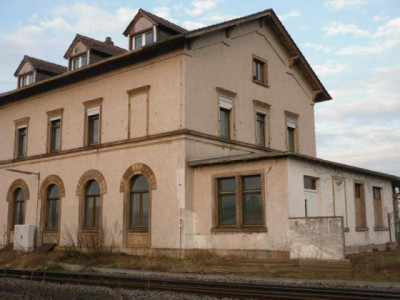 das 1883 aus Sandstein errichtete Bahnhofsgebäude liegt sehr exponiert im Eingangsbereich von Freinsheim. Im Erdgeschoß sind die 3,95 mtr. hohen Decken durch Gußziersäulen gehalten und die großzügige Wartehallen noch zu ahnen, das Obergeschoß verfügt über 3,65 mtr. Raumhöhe und 5 fast gleichgroße Räume die über den breiten Flur erschlossen sind. Über das original erhaltenen Holztreppenhaus gelangt man ins Dachgeschoß, welches durch den hohen Kniestock fast vollflächig als Wohnraum nutzbar ist. Das Kellergeschoß wir von aussen durch Sandsteinarkaden optisch aufgewertet, der Zugang ist über die ursprüngliche Treppe oder die Zufahrt von hinten gewährleistet.Weitere Informationen zum Energieausweis ist nicht vorhandenCourtage-Hinweis:provisionsfrei